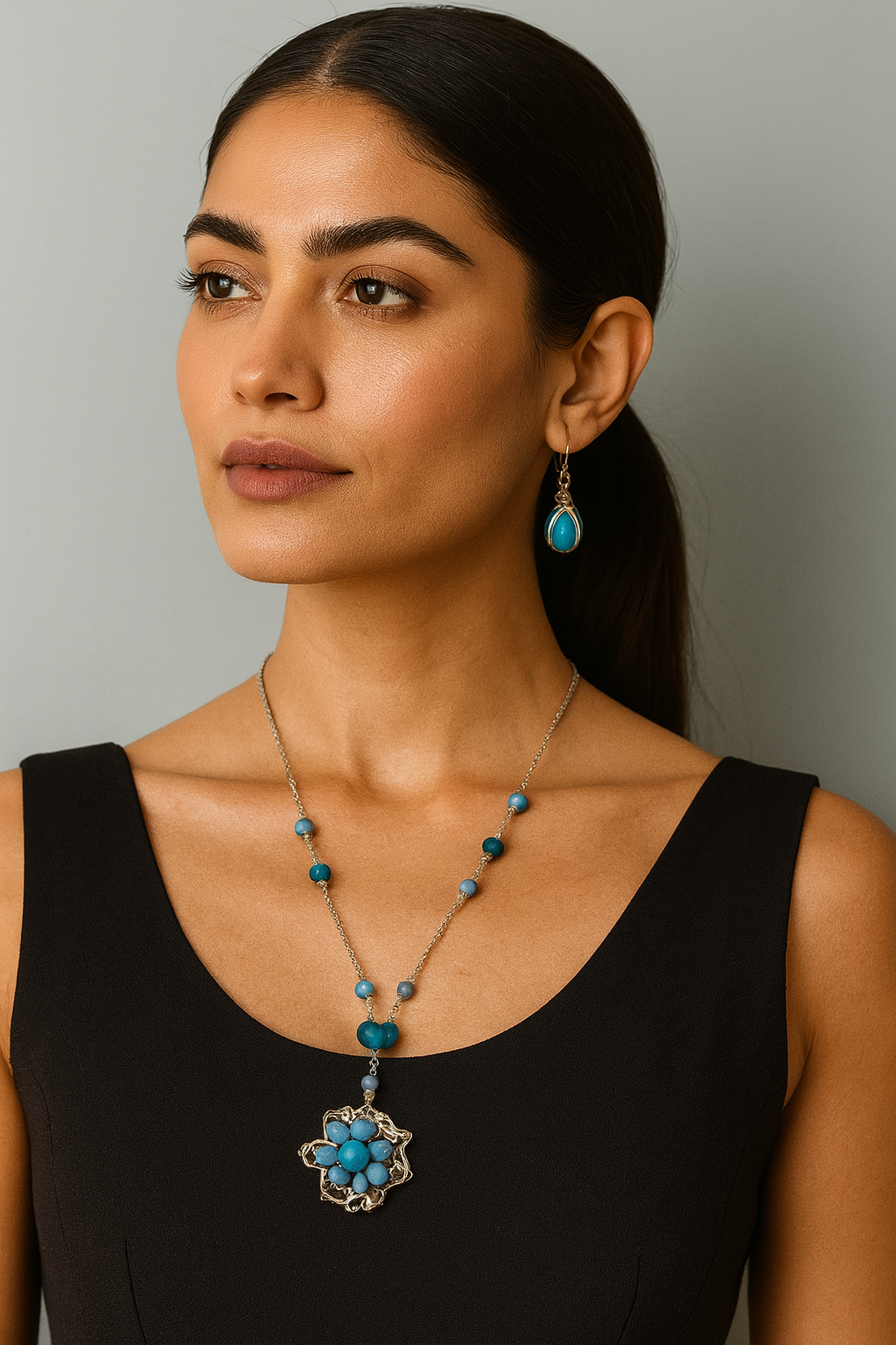 Incluye aretes a juego, completando un conjunto ideal para quienes valoran el arte, la moda y la autenticidad. Una pieza para usar y sentir… como una flor que florece bajo el sol.