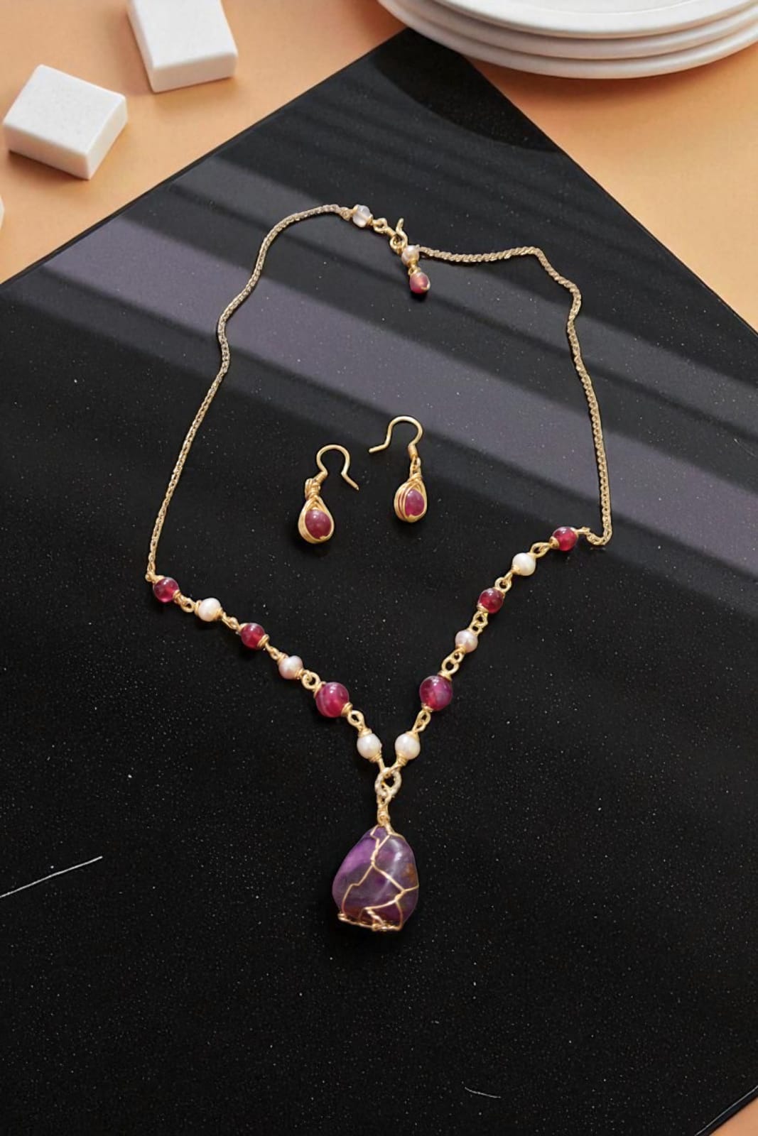 Descubre el poder del Fuego Ancestral, un collar artesanal creado con la técnica de alambrismo que honra la fuerza interior y la conexión con la tierra. Su vibrante combinación de citrino, jaspe rojo y ágatas emite energía, vitalidad y protección, convirtiéndolo en mucho más que un accesorio: es un amuleto con alma.